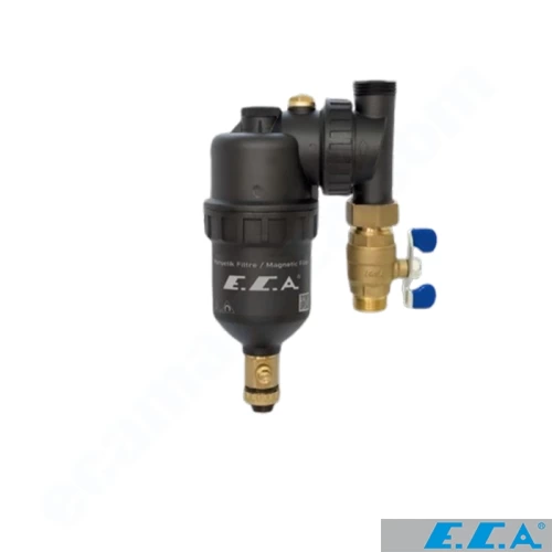 E.C.A. Manyetik Filtre (Ürün Kodu: 2602499987) Kombi sistemleri için tasarlanmış güçlü bir tortu ayırıcıdır. 9000 Gauss mıknatısı, özel süzgeç, otomatik purjör ve boşaltma vanası ile sistem performansını ve ömrünü artırır.